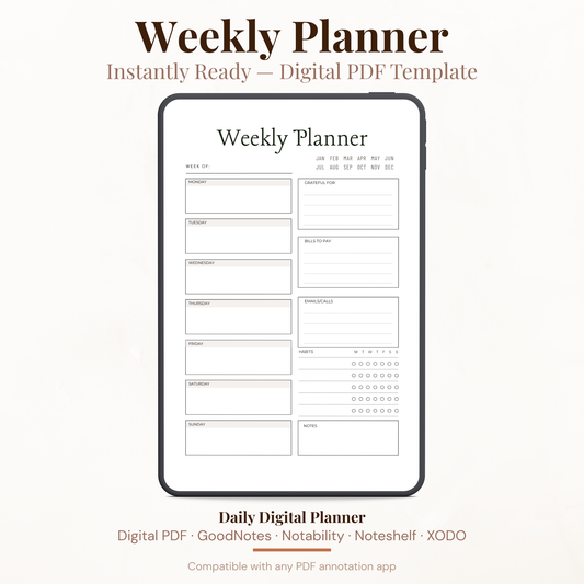 Stay organized and focused with this minimalist weekly digital planner, designed to help you manage...